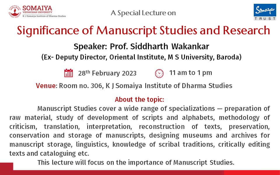 A Special Lecture on Significance of Manuscript Studies and Research